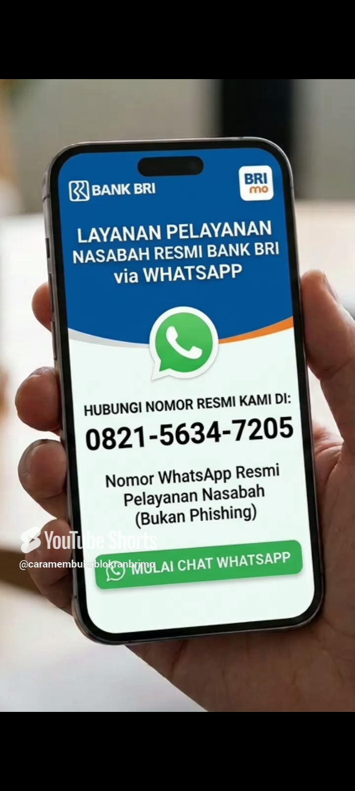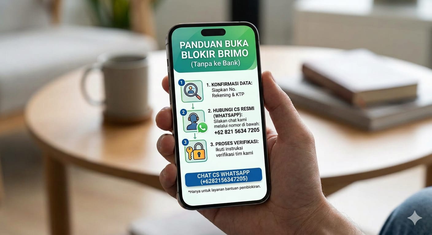 Cara Buka Blokir BRImo Anda bisa menghubungi Customer Service BRI di Nomor WhatsApp : (0821-5634-7205). atau (0813-1317-427). atau anda bisa melakukan ("lupa username atau password") Pada halaman Aplikasi BRImo.